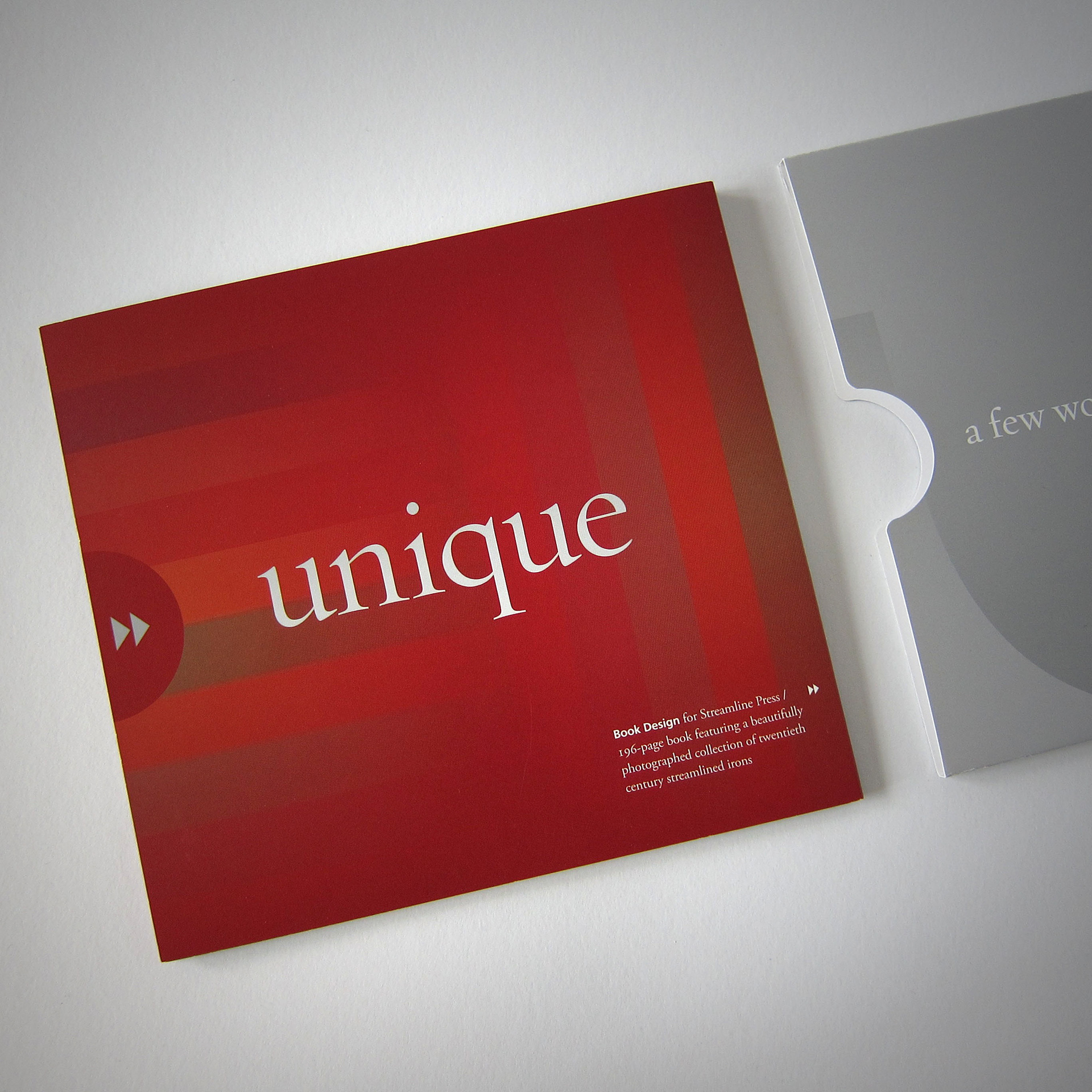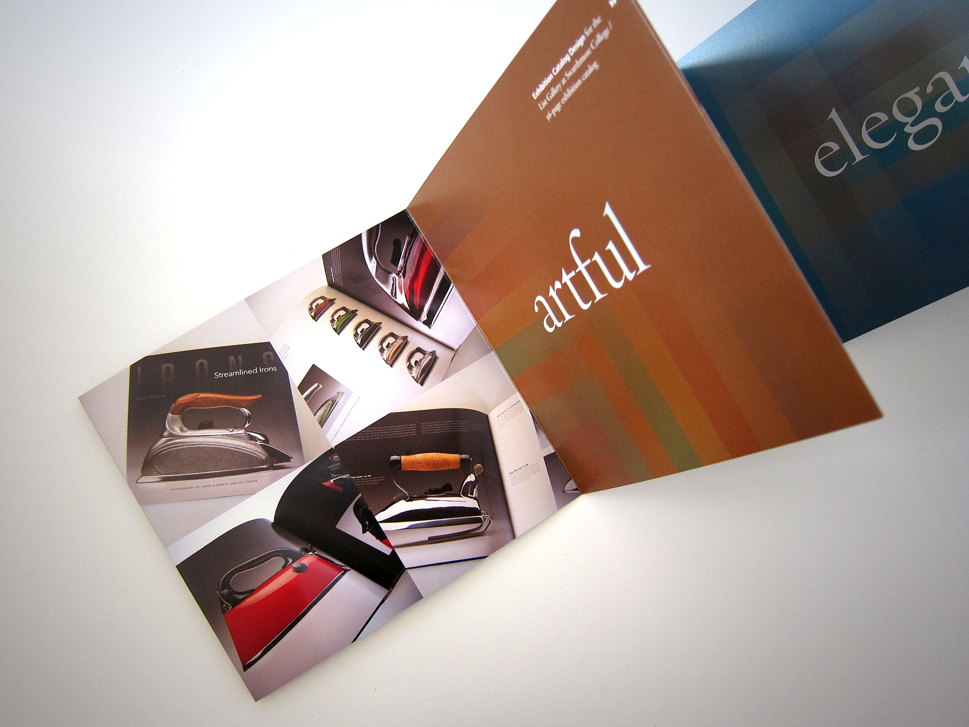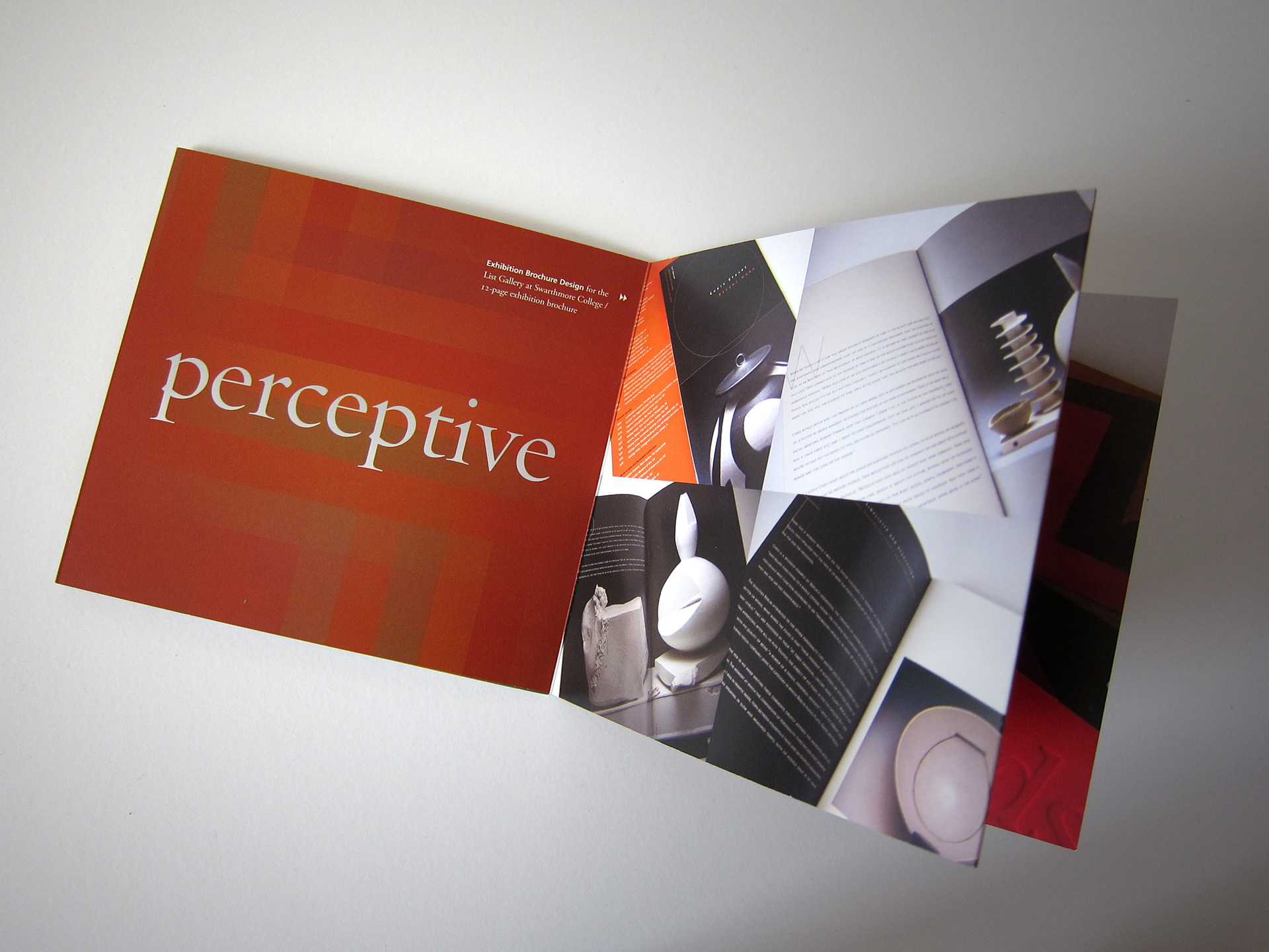 Two self promotion pieces created to feature different types of print work. Two one-color diecut sleeves packages two separate accordian fold brochures. 5 x 5.5 inches.